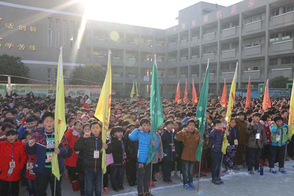 仪式之后,教师代表李敏、学生代表分别激情演讲。接着,是教师宣誓,他们的声音整体划一,在校园的上空余音袅袅、回声阵阵。